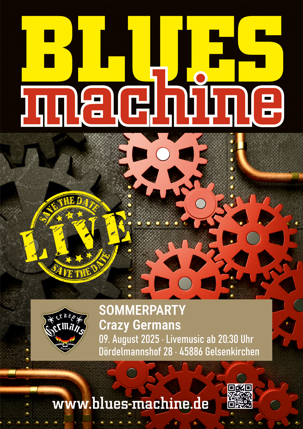| Samstag · 09.08.2025 Gelsenkirchen Sommerparty Crazy Germans Beginn: Live music ab 20:30 Uhr Am Dördelmannshof 28 45886 Gelsenkirchen Facebook: www.facebook.com/37deepwest/ |
